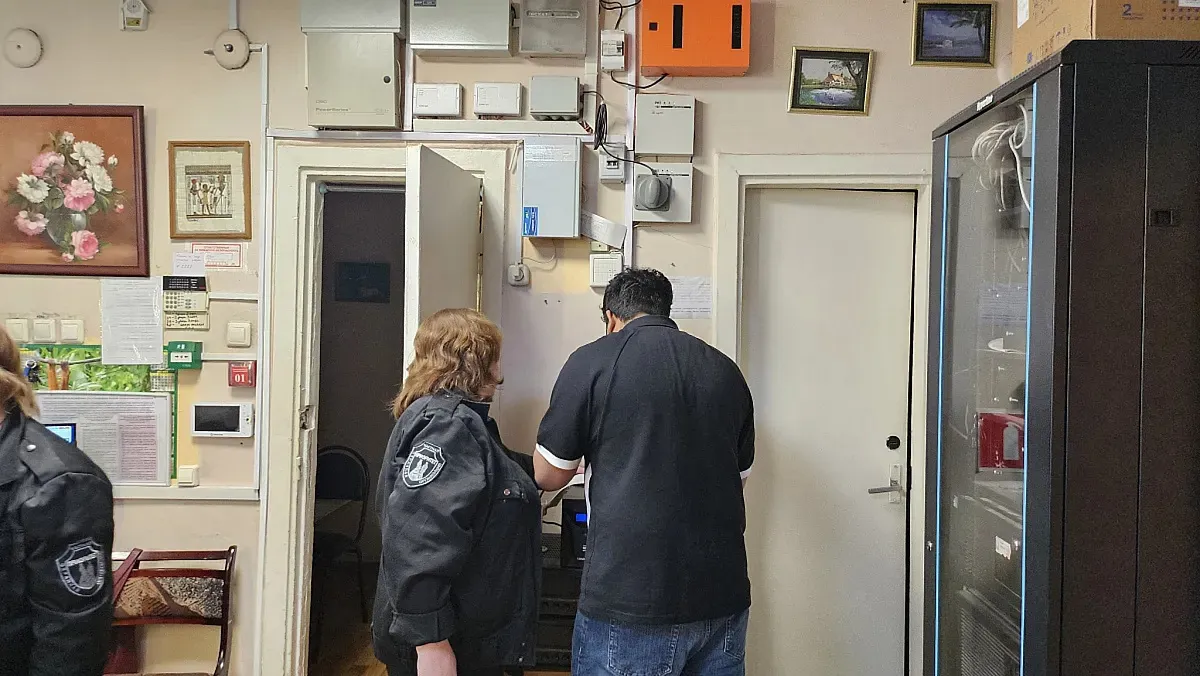 В 15 ч. 20 мин. сотрудник охраны заметил вооруженного нападающего у входа в здание общежития. Сотрудники охраны заблокировали входную дверь. Один из них незамедлительно проинформировал оперативные службы о вооруженном нападении (УСЛОВНО).