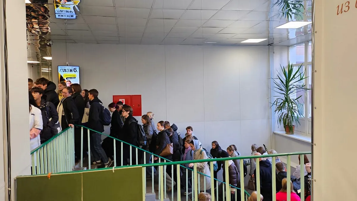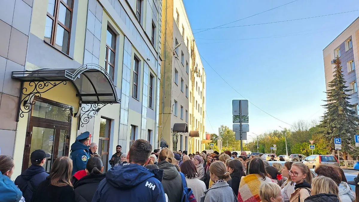 Затем, вследствие падения БпЛА, начинается горение на крыше теоретического корпуса. Сотрудником охраны активировалась система оповещения и управления эвакуацией нажатием ручного пожарного извещателя. Сотрудники и обучающиеся эвакуировались и направились в место сосредоточения.