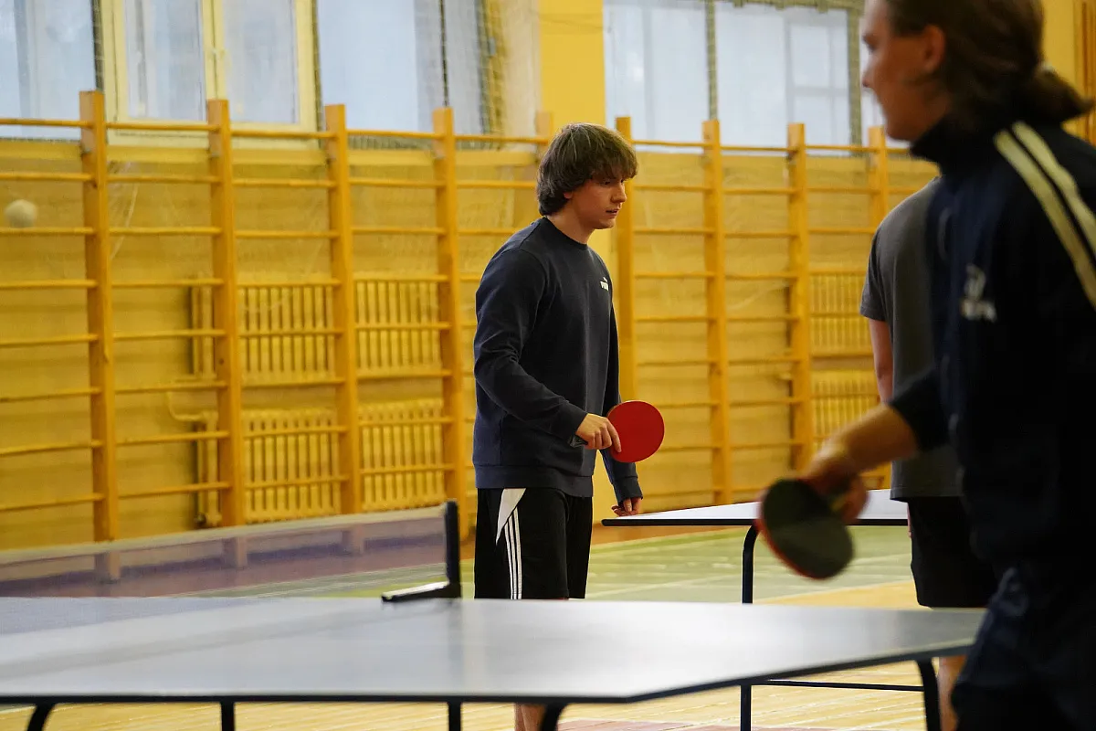 Турнир по настольному теннису собрал 55 участников, которые сражались по правилам командных соревнований, когда каждая команда встречается с каждой командой по схеме: первая ракетка встречается с первой, вторая ракетка играет со второй ракеткой и так далее.