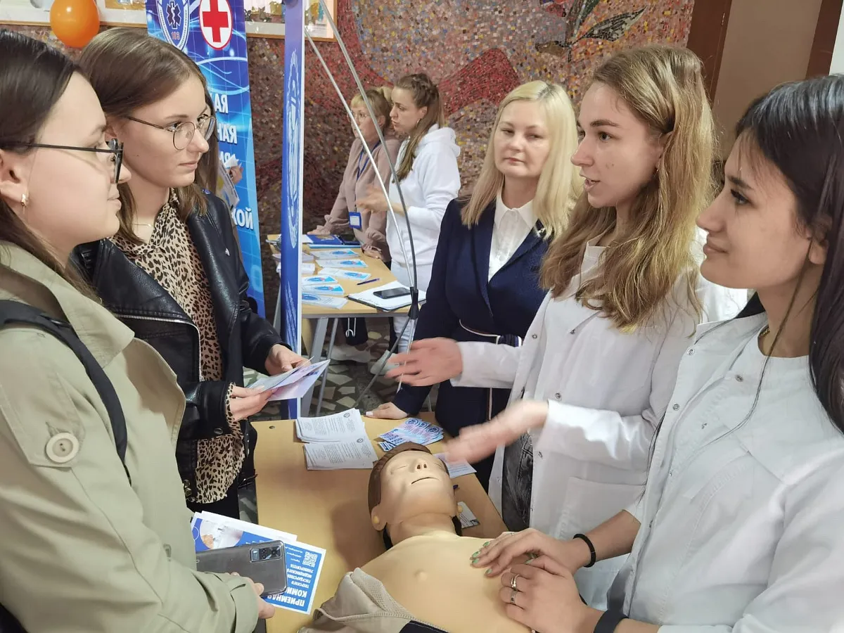 В ходе ярмарки потенциальные абитуриенты Тверского ГМУ смогли не только больше узнать о нашей образовательной организации (особенностях поступления, целевом наборе, вступительных испытаниях), но и на мастер-классе приобрести практические навыки сердечно-легочной реанимации на современном манекене. Большой интерес посетителей ярмарки вызвал рассказ о различных формах довузовской подготовки - подготовительных курсах и репетиционном тестировании.